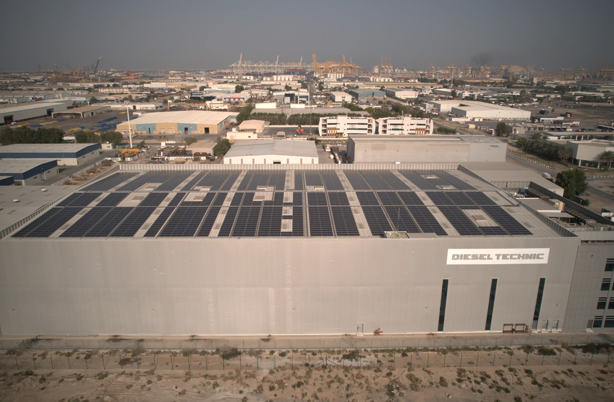 Following the successful completion of the facility’s construction in 2013, Diesel Technic once again entrusted AMANA—this time to design and install a rooftop solar PV system at their JAFZA One facility.